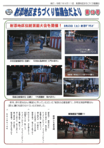 28年間の長きに渡り続いてきた「射添を考える会」の活動を基盤にしながら新しい時代に対応した地域のコミュニティづくりを推進しています。